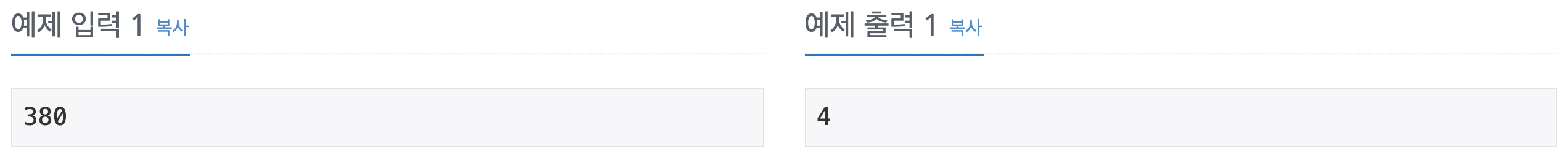 예를 들어 입력된 예1의 경우에는 아래 그림에서 처럼 4개를 출력해야 한다.