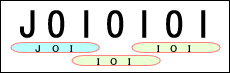 입력으로 주어지는 문자열에서 연속으로 3개의 문자가 JOI 또는 IOI인 곳이 각각 몇 개 있는지 구하는 프로그램을 작성하시오. 문자열을 알파벳 대문자로만 이루어져 있다. 예를 들어, 아래와 같이 "JOIOIOI"에는 JOI가 1개, IOI가 2개 있다.