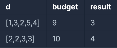 public int solution(int[] d, int budget) {