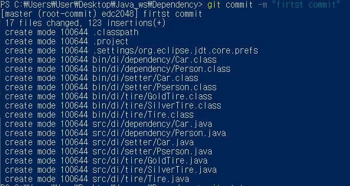 "first commit"이라는 커밋메세지와 함께 커밋을 합니다.