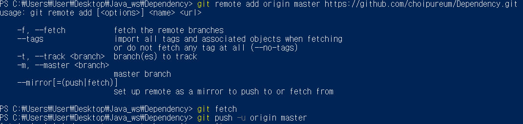 => 혹은 git remote add origin /git원격주소 입니다