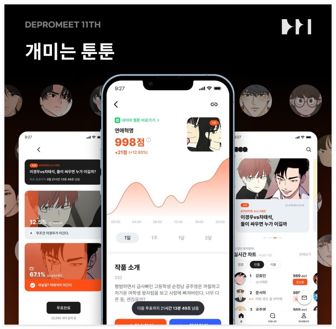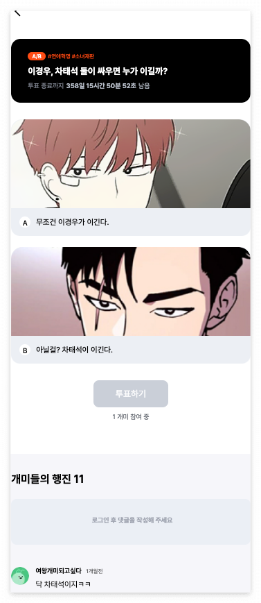 다양한 플랫폼의 웹툰을 모아서 주식 양식을 더한 덕질 플랫폼으로 주제를 정하고 기술 스택을 정하였다. Next.js 를 통해 기존 CSR의 단점인 SEO 문제를 극복하고 React Query로 데이터 패칭을, Recoil로 전역 state를 관리하였다. 이외에도 Hotjar, Mixpanel, Sentry, Storybook등 다양한 기술에 대한 접근 및 시도가 있었다.