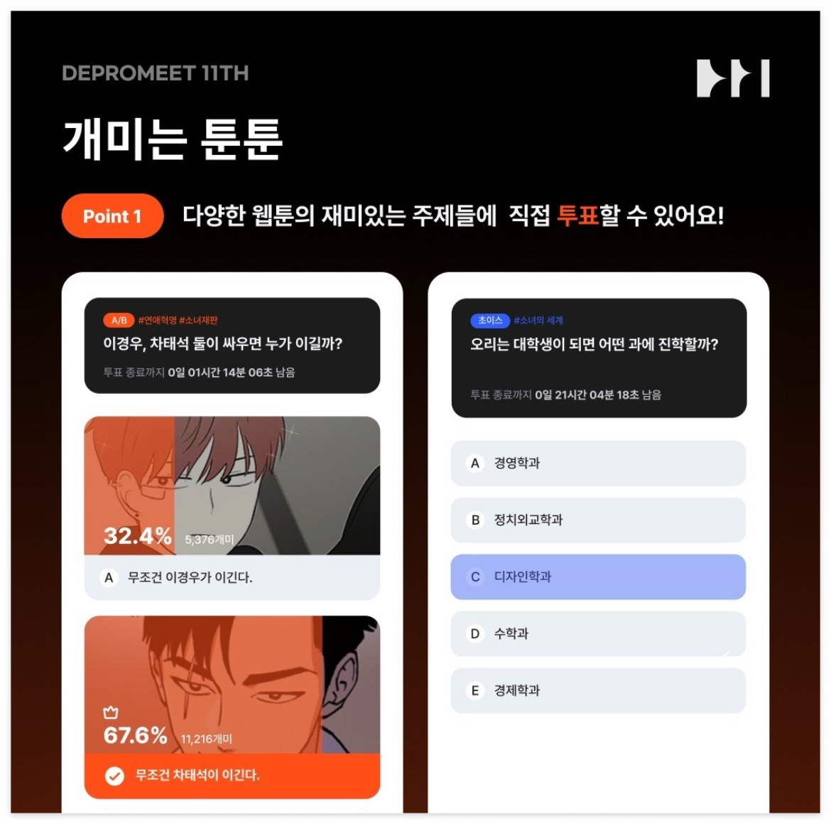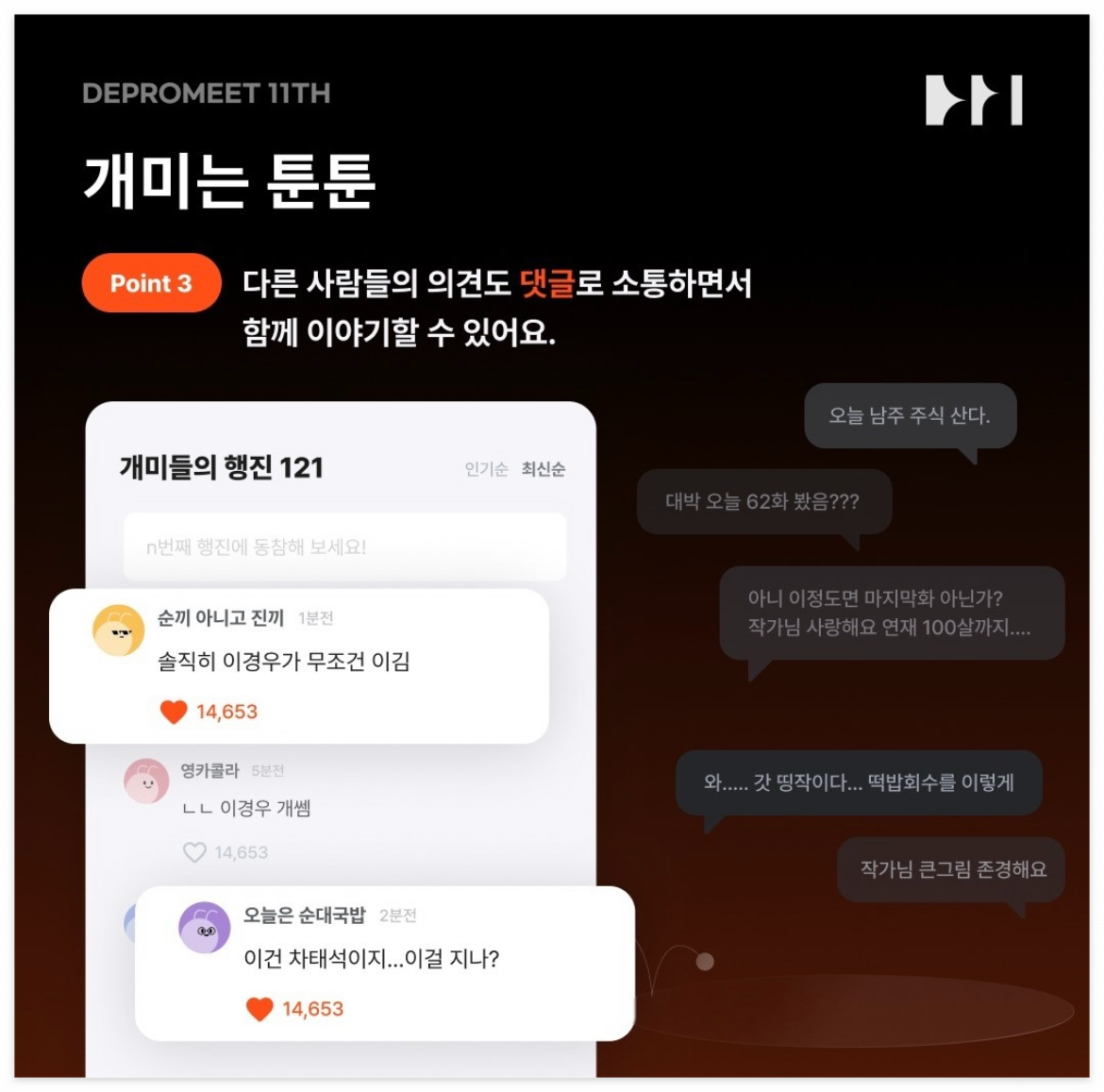 약 반년간 진행된 디프만 활동이 파이널 발표를 마침표로 끝이 났다. 기존 DDD, 오픈소스 컨트리뷰톤 활동을 통해서 스스로 채찍질할 수 있기도 하고 개발자 네트워킹 및 협업을 통해서 1년 반동안 많은 성장을 이뤘다고 생각한다. 이후 이직을 고민하고, BE에서 FE로 전향하게 되면서 현재 현업에서 쌓을 수 없는 리액트 프로젝트 경험이라던가 퍼블리셔가 맡는 파이를 가져오고 싶어서 디프만 11기 FE로 약 반년간 프로젝트를 진행하게 되었다.