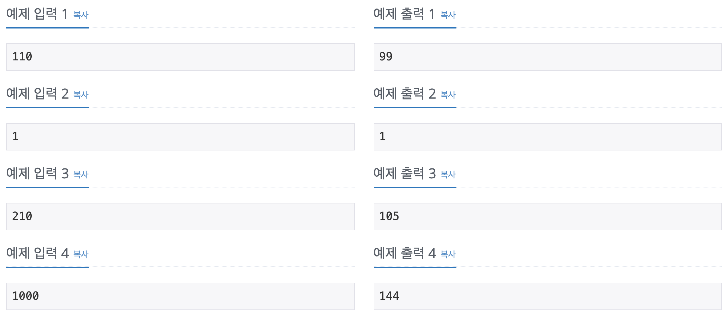 문제를 처음에 접했을 때는 1-9, 10-99, 100-999로 나누어줘야되나? 생각했지만, 잘보면 두자리수까지는 전부 적용되는 것을 확인할 수있습니다. 그렇기때문에 99까지는 99를 return하게 됩니다. 그리고 상한선이 1000까지라고 했기때문에 세자리수만 코딩하면 되는 것입니다. 그렇기 때문에 한수를 정의하는 함수는 3자리 수의 첫째자리 수 부터 셋째자리 수 까지 n1~n3로 받은 다음 등차수열이면 1을 반환하게 되는 코드입니다. math.abs()(절대값)을 사용해도 되고 아래처럼 간단하게도 표현할 수 있습니다. 이후 1000도 테스트 케이스에 있으므로 1000이 나오게되면 한수가 아닌 1000을 cnt에서 -1을 해주게 됩니다. ㅇㅅㅇ