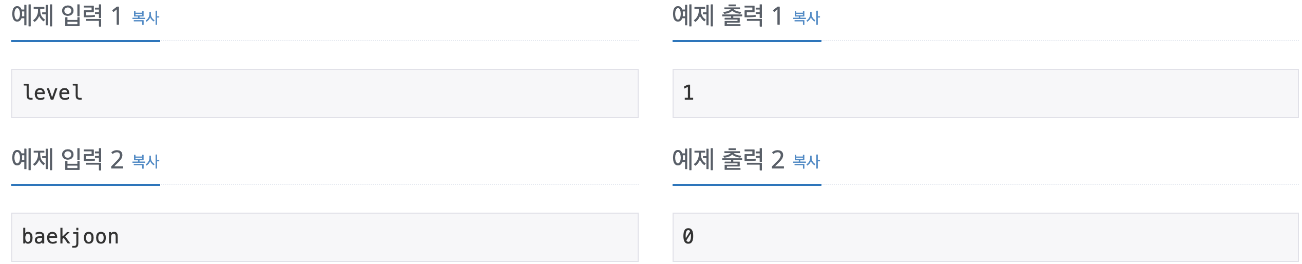 level, noon은 팰린드롬이고, baekjoon, online, judge는 팰린드롬이 아니다.